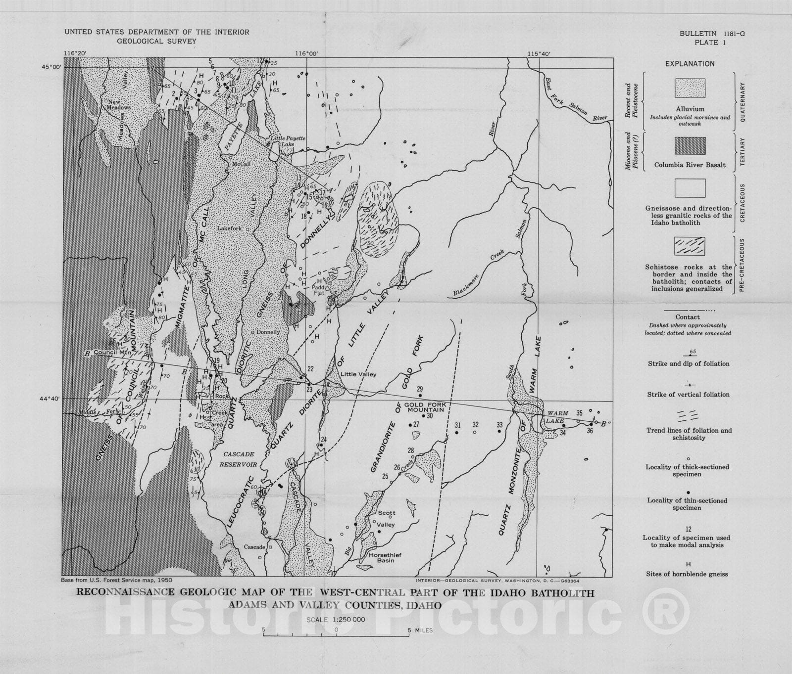 Map : Reconnaissance petrographic cross section of the Idaho batholith, Adams and Valley Counties, Idaho, 1964 Cartography Wall Art :
