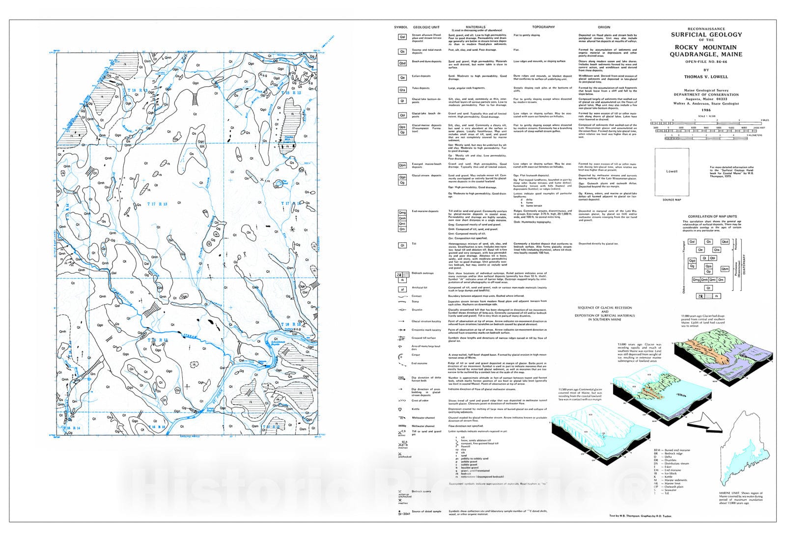 Map : Reconnaissance Surficial Geology of the Rocky Mountain 15' Quadrangle, Maine, 1986 Cartography Wall Art :