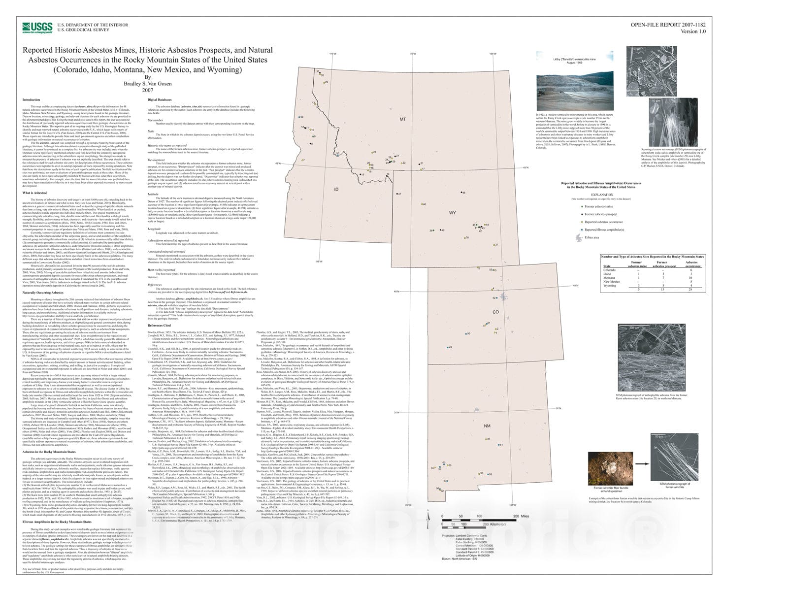 Map : Reported historic asbestos mines, historic asbestos prospects, and natural asbestos occurrences in the Rocky Mountain states of th, 2007 Cartography Wall Art :