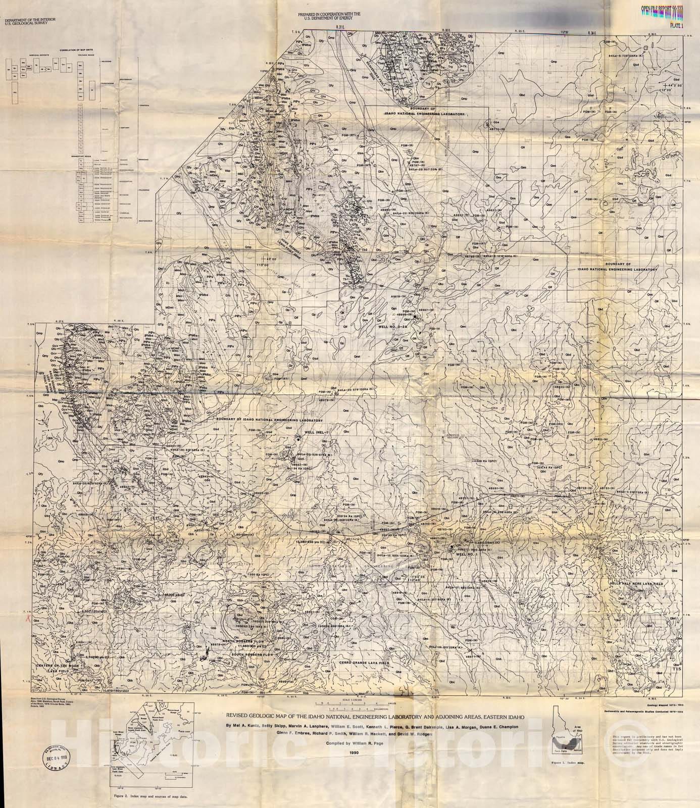 Map : Revised geologic map of the Idaho National Engineering Laboratory and adjoining areas, eastern Idaho, 1990 Cartography Wall Art :
