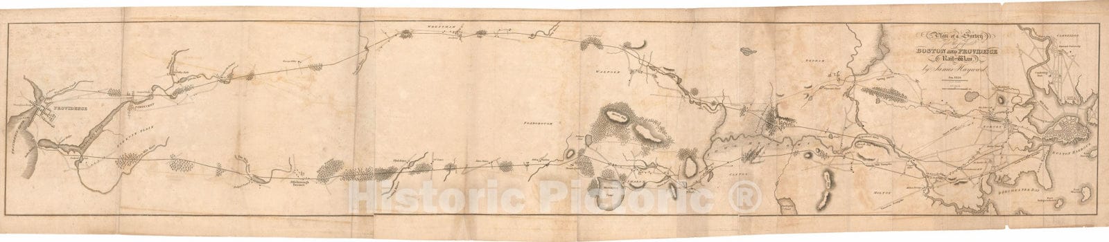 Historic Map : Rhode Island, the Proposed Boston and Providence Railway 1828 Transit Railroad Catography , Vintage Wall Art