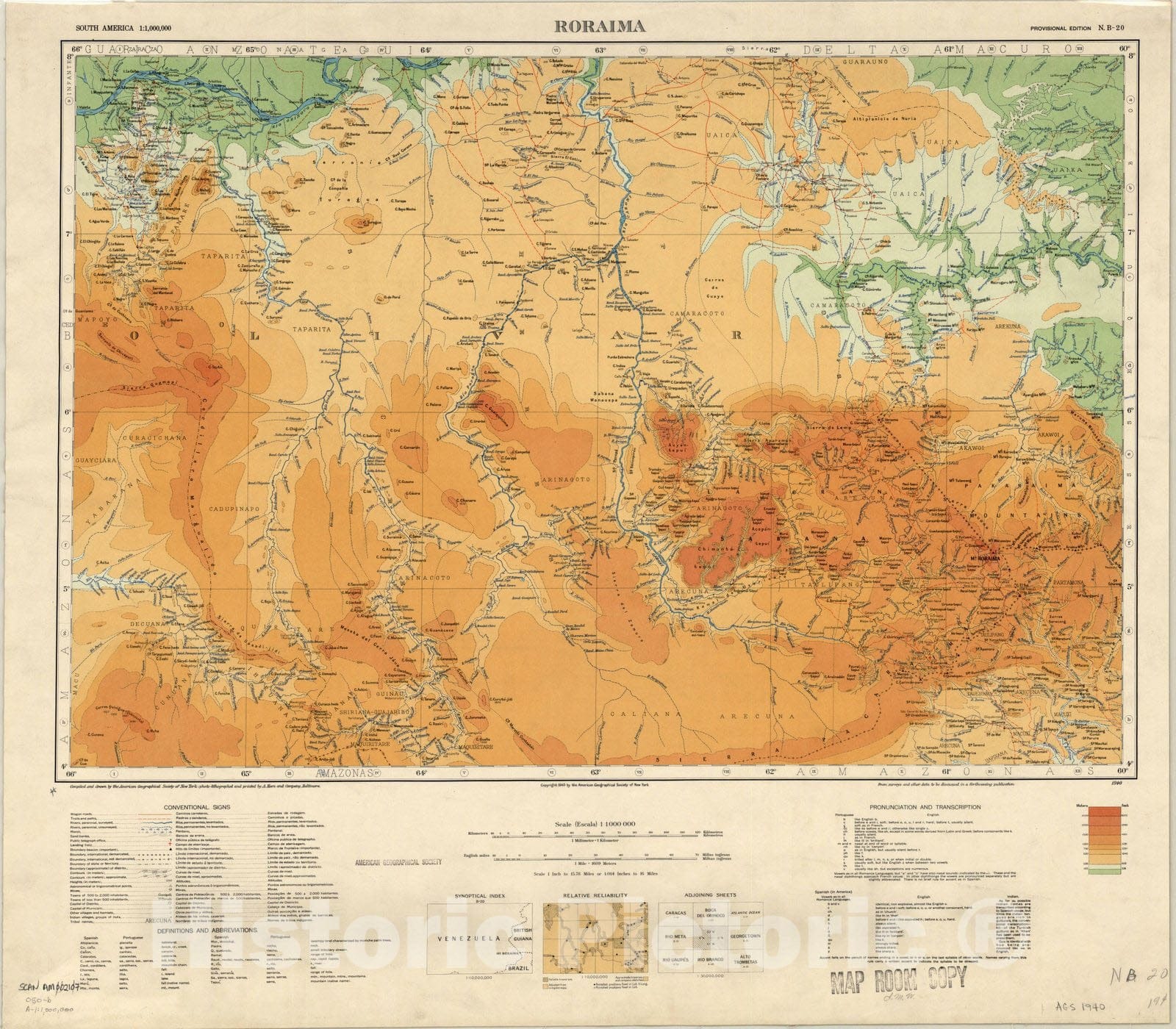 Map : Roraima, Venezuela 1940, Map of Hispanic America, Antique Vintage Reproduction