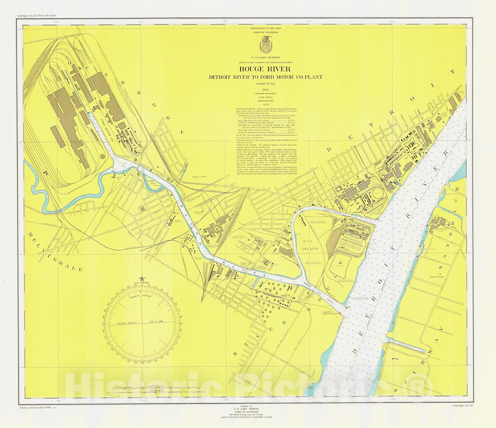 Historic Nautical Map - Rouge River Detroit River To Ford Motor Co Plant, 1948 NOAA Chart - Michigan (MI) - Vintage Wall Art