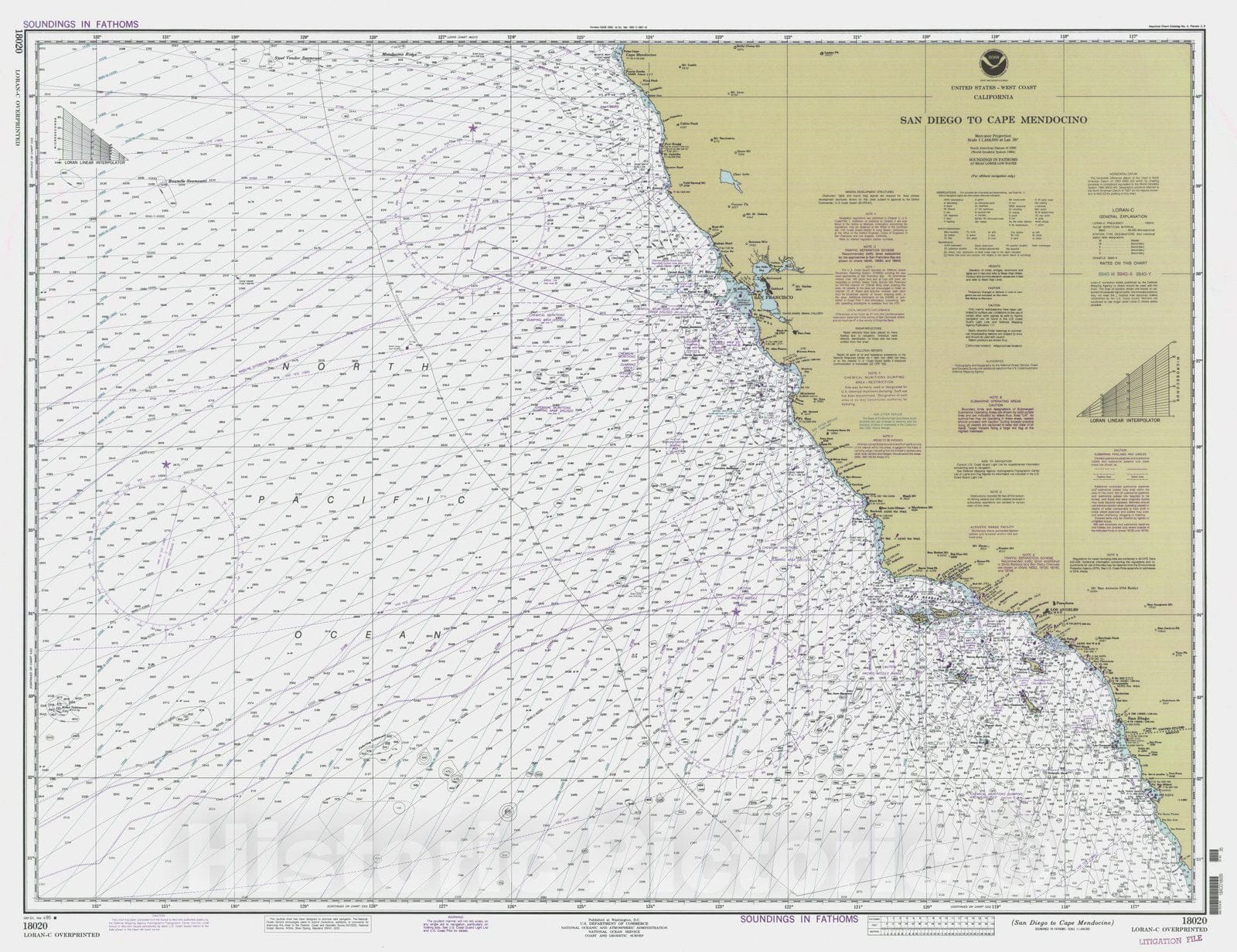 Historic Nautical Map - San Diego To Cape Mendocino, CA, 1995 NOAA Chart - Vintage Wall Art