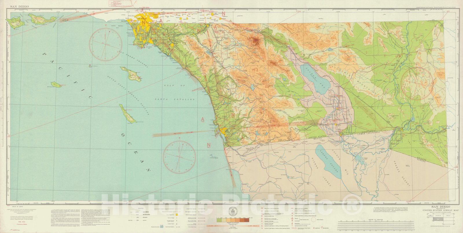 Historic Nautical Map - San Diego Section Of United States Airway Map, CA, AZ, 1934 AeroNOAA Chart - Vintage Wall Art