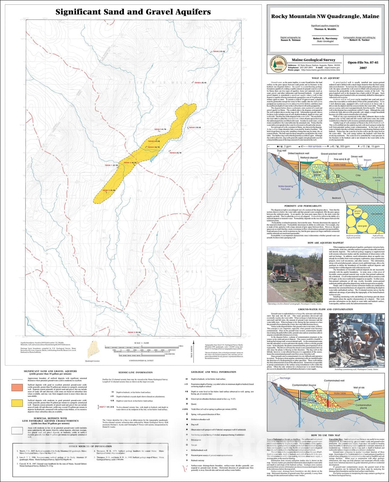 Map : Sand and gravel aquifers in the Rocky Mountain NW quadrangle, Maine, 2007 Cartography Wall Art :
