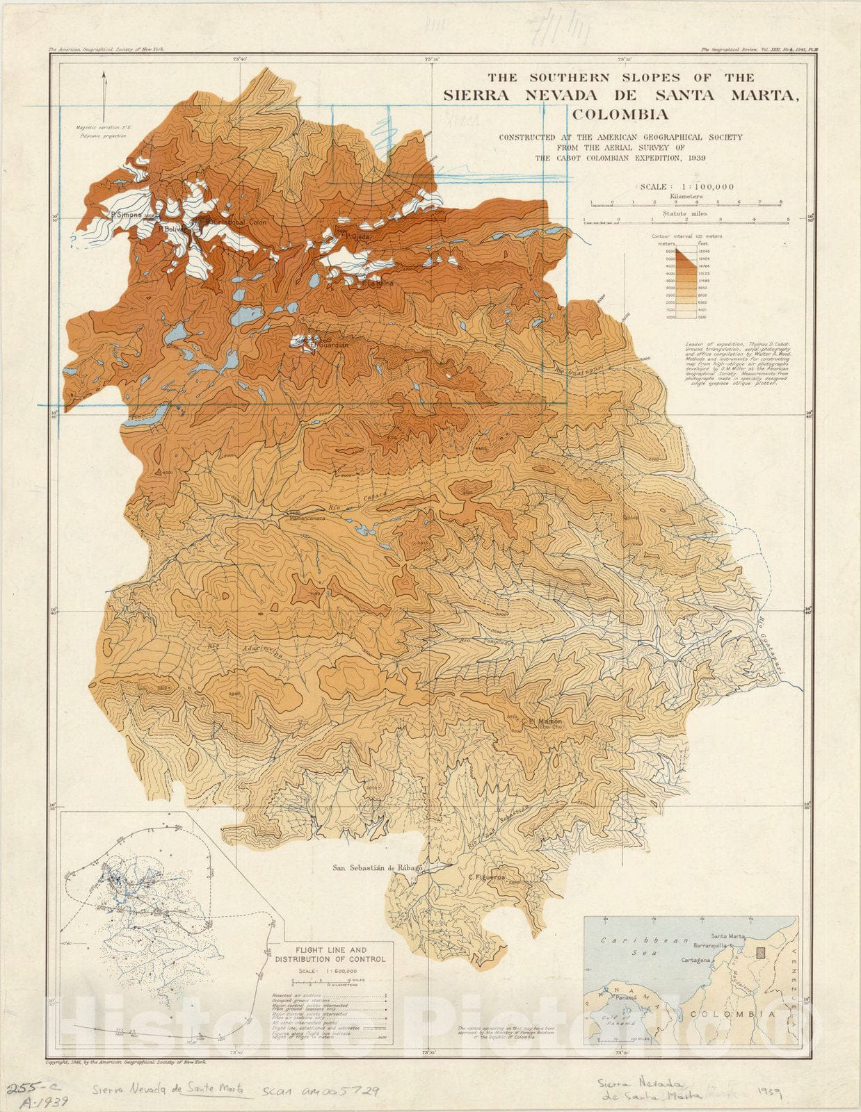 Map : Santa Marta Range, Colombia 1941, The southern slopes of the Sierra Nevada de Santa Marta, Colombia. , Antique Vintage Reproduction