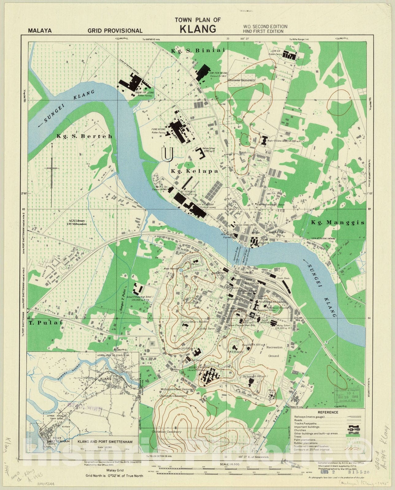 Map : Selangor, Malaysia 1945, Town plan of Klang , Antique Vintage Reproduction