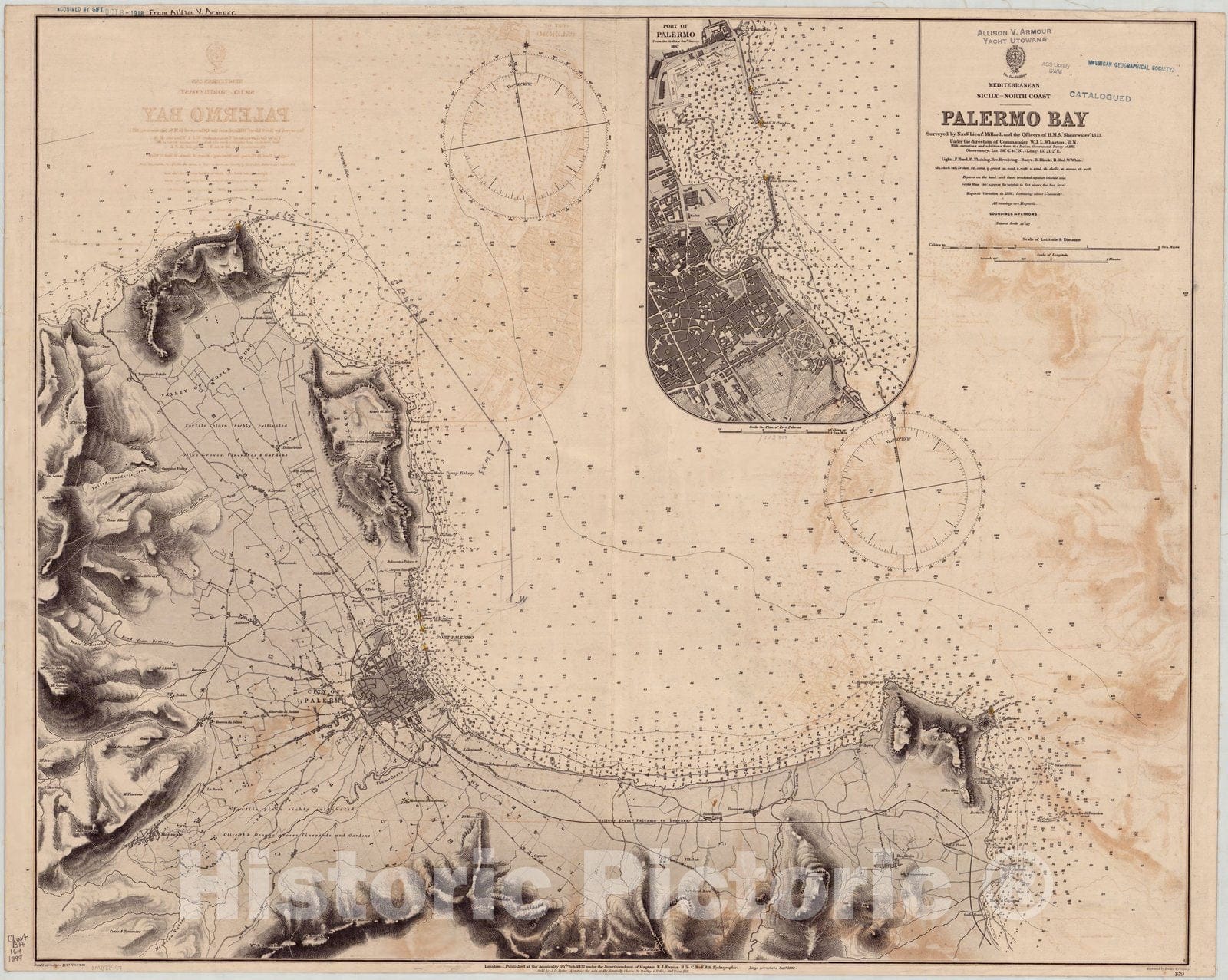 Mediterranean, Sicily, north coast, Palermo Bay / published at the Admiralty 16th Feb. 1877 ; Engraved by Davies & Company