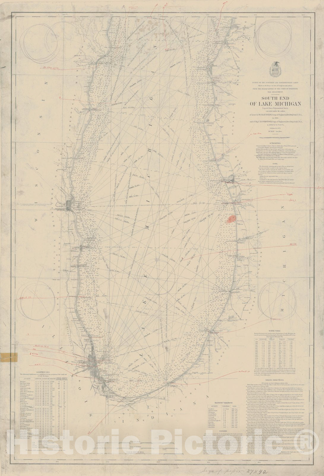 Historic Nautical Map - South End Of Lake Michigan, MI, WI, 1876 NOAA Chart - Vintage Wall Art
