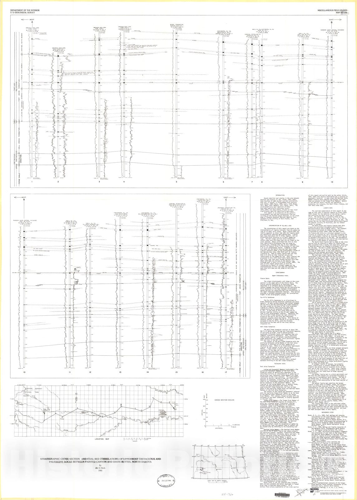 Map : Stratigraphic cross sections and coal bed correlations of uppermost Cretaceous and Paleocene rock between Painted Canyon and Davis Buttes, North Dakota, 1985 Cartography Wall Art :