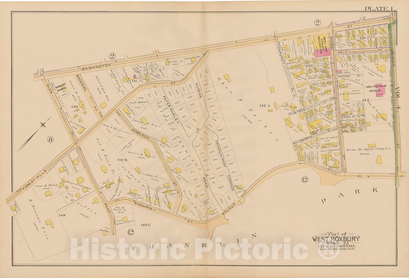 Historic Map : Suffolk County, Jamaica Plain & Roxbury 1890 Plate 001 , Vintage Wall Art