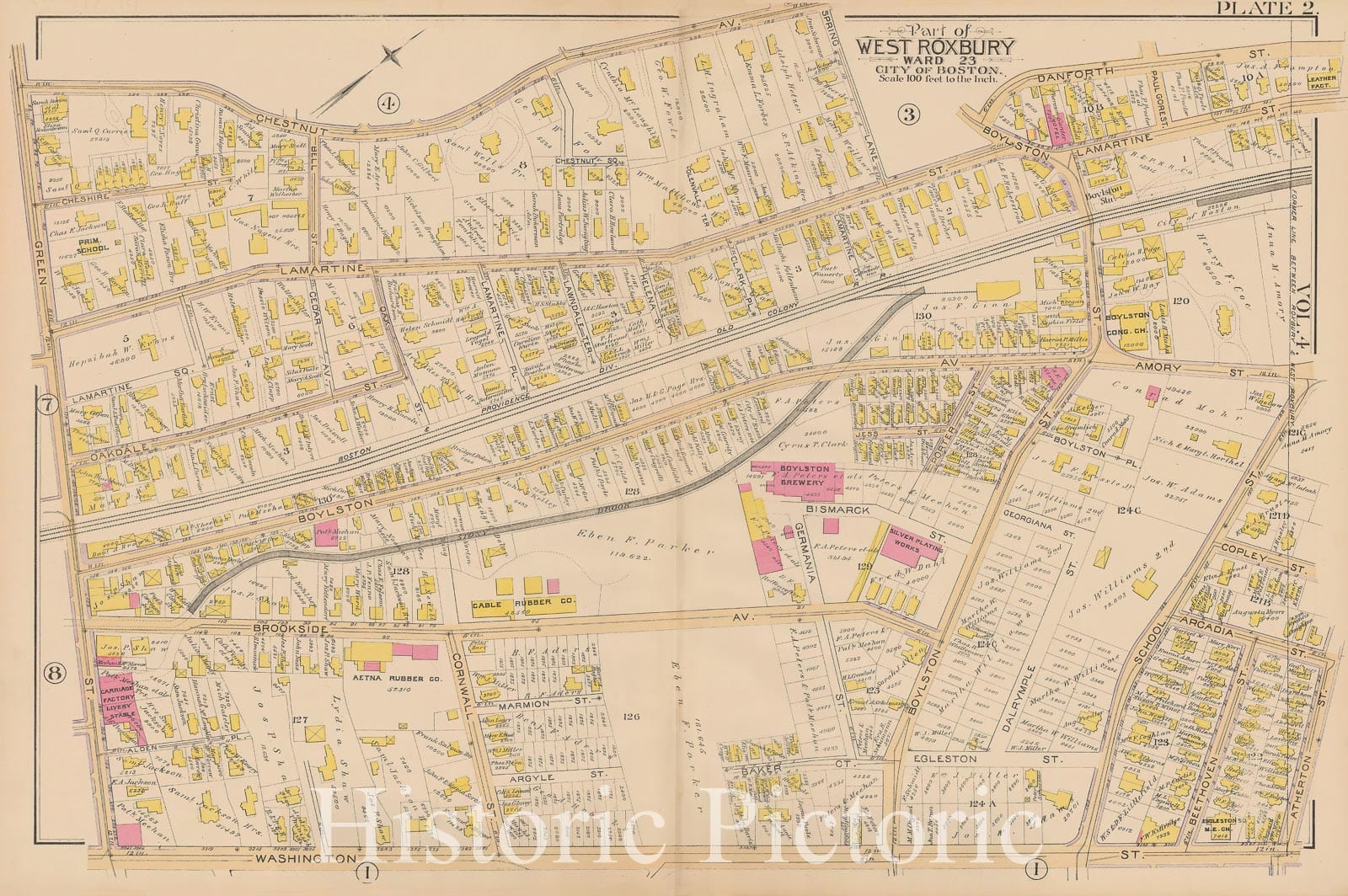 • .Historic Map : Suffolk County, Jamaica Plain & Roxbury 1890 Plate 002 , Vintage Wall Art