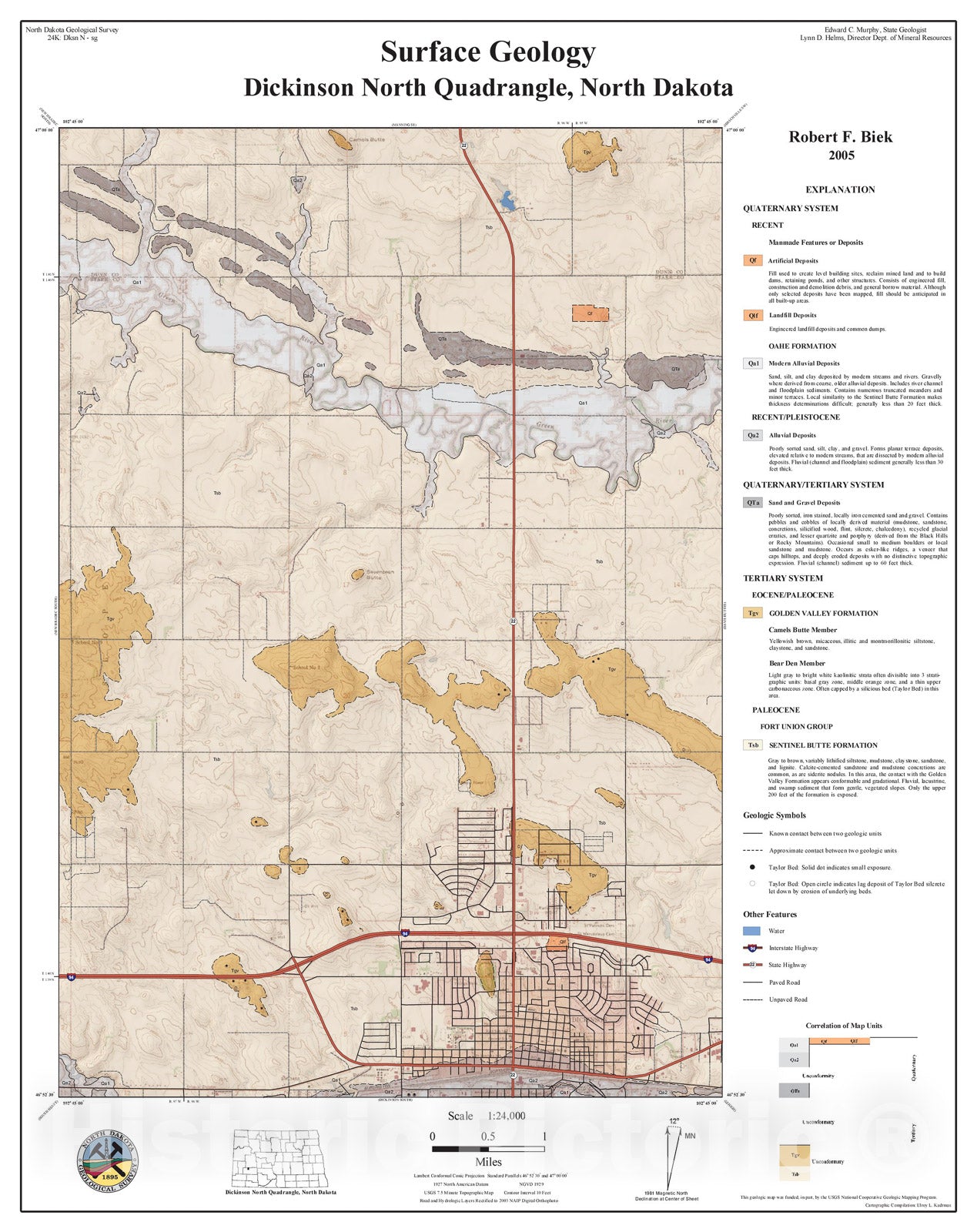 Map : Surface geology - Dickinson North quadrangle, North Dakota, 2005 Cartography Wall Art :