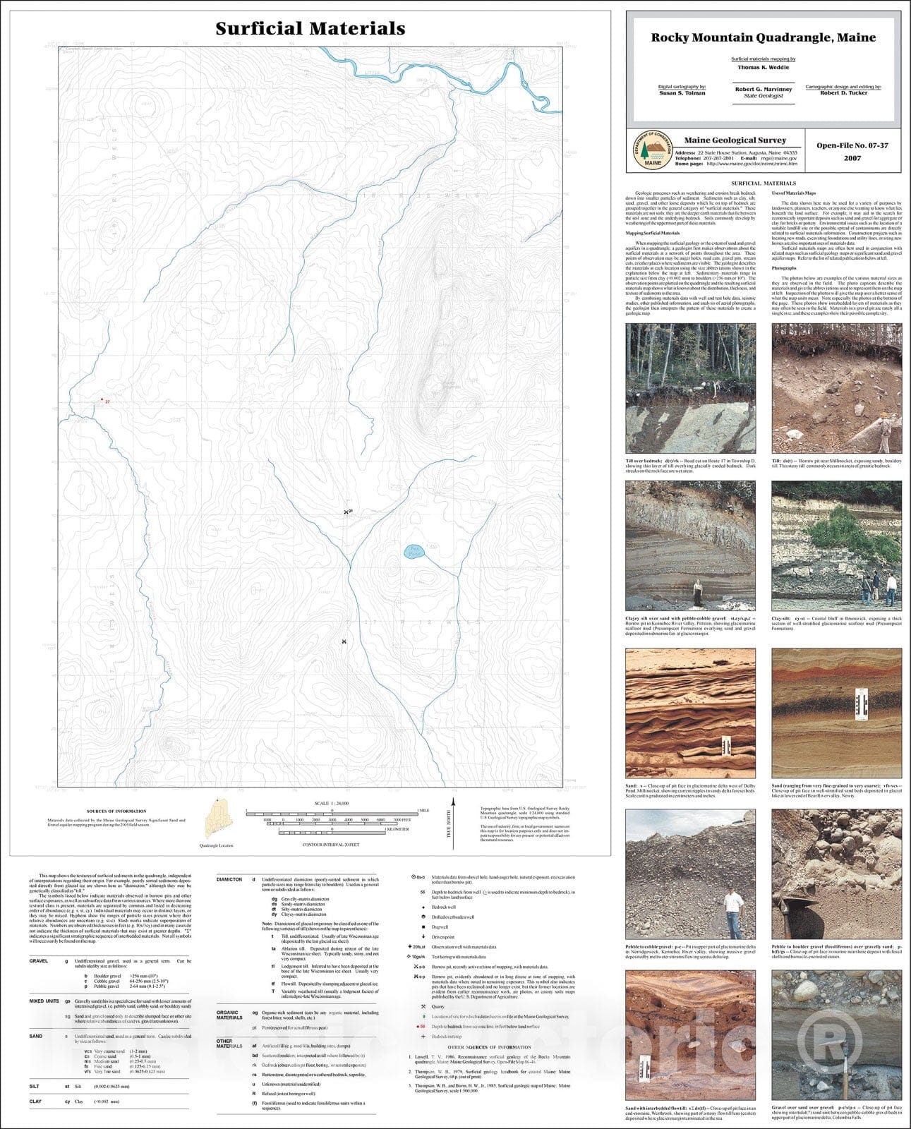 Map : Surficial materials of the Rocky Mountain quadrangle, Maine, 2007 Cartography Wall Art :