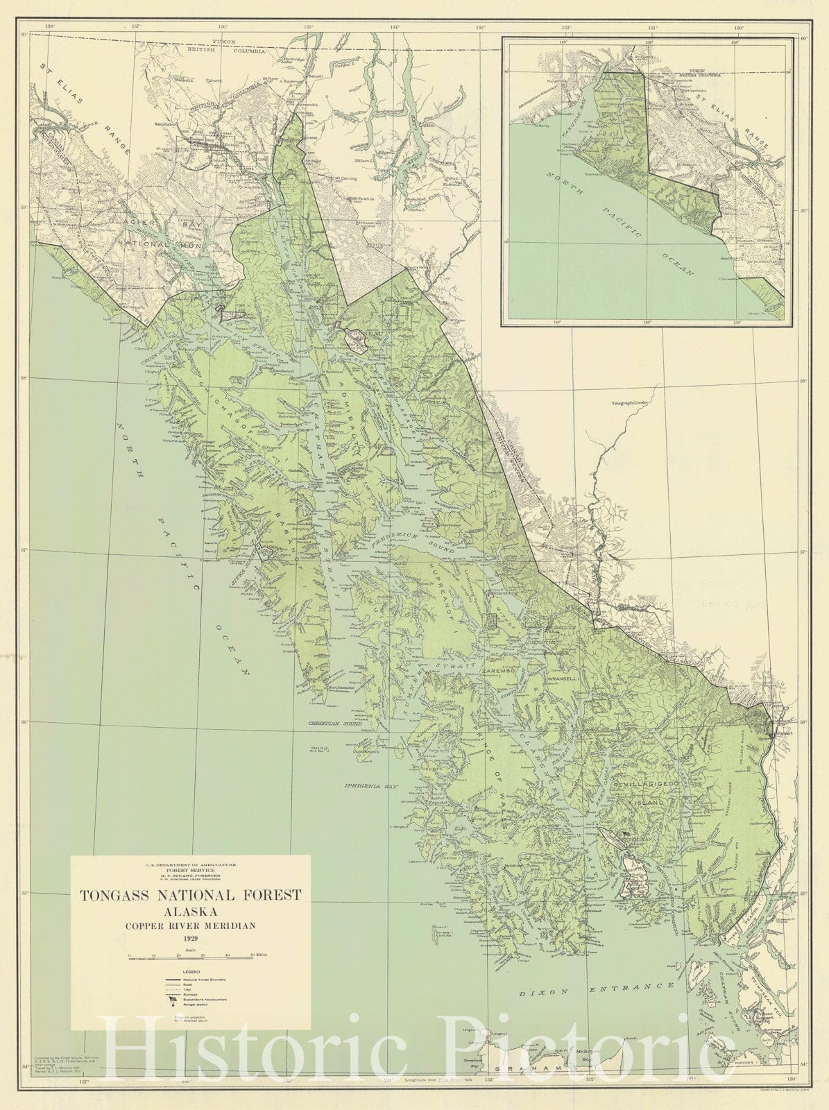 Historic Nautical Map - Tongass National Forest Alaska Copper River Meridian, 1929 NOAA Topographic Historic Nautical Map - Alaska (AK) - Vintage Wall Art