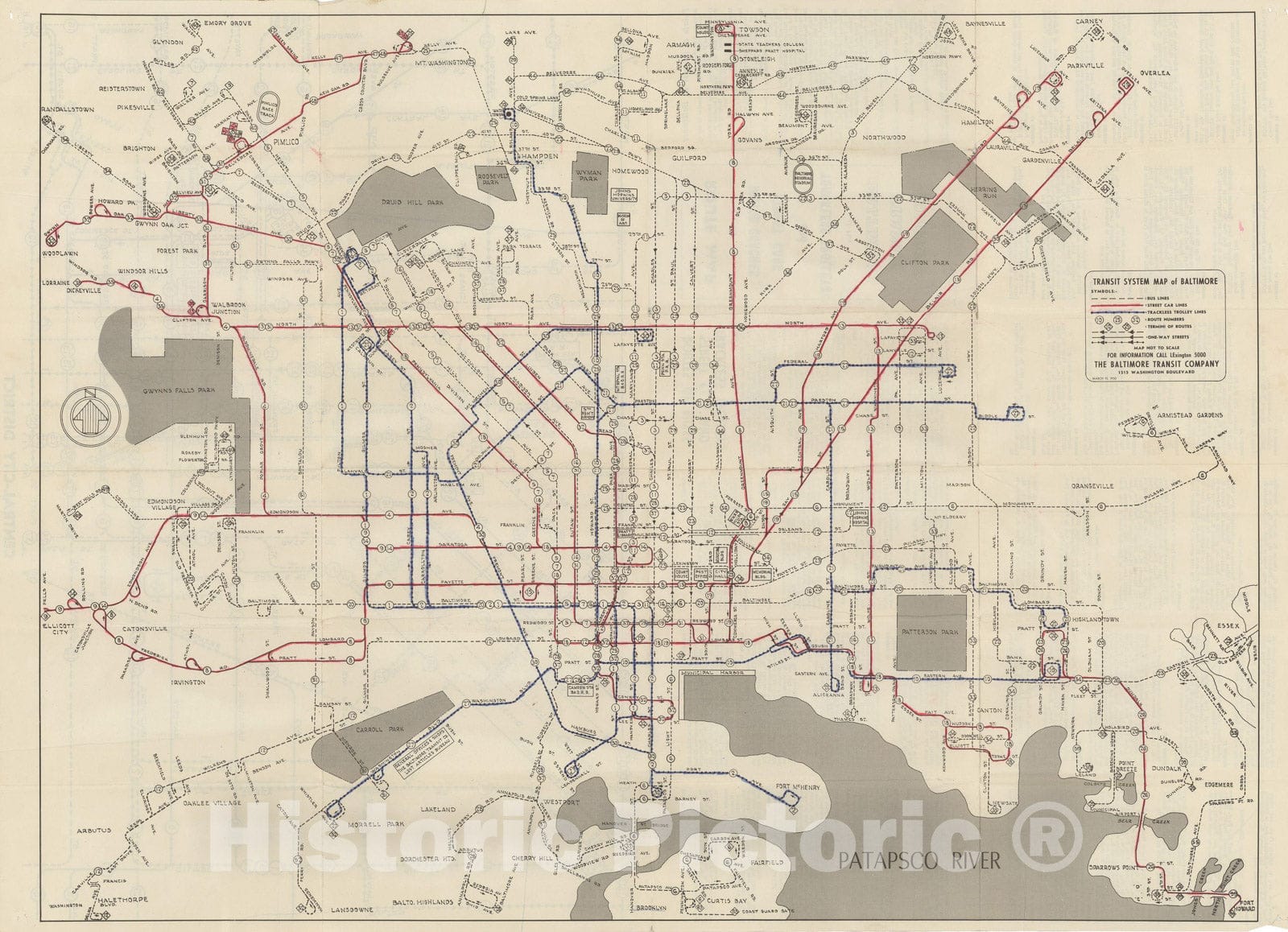 Transit System Map of Baltimore 1950