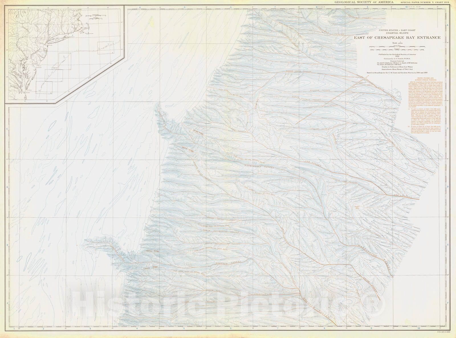 Historic Nautical Map - United States - East Coast Coastal Slope East Of Chesapeake Bay Entrance, USA, 1938 NOAA Bathymetric Historic Nautical Map - Vintage Wall Art