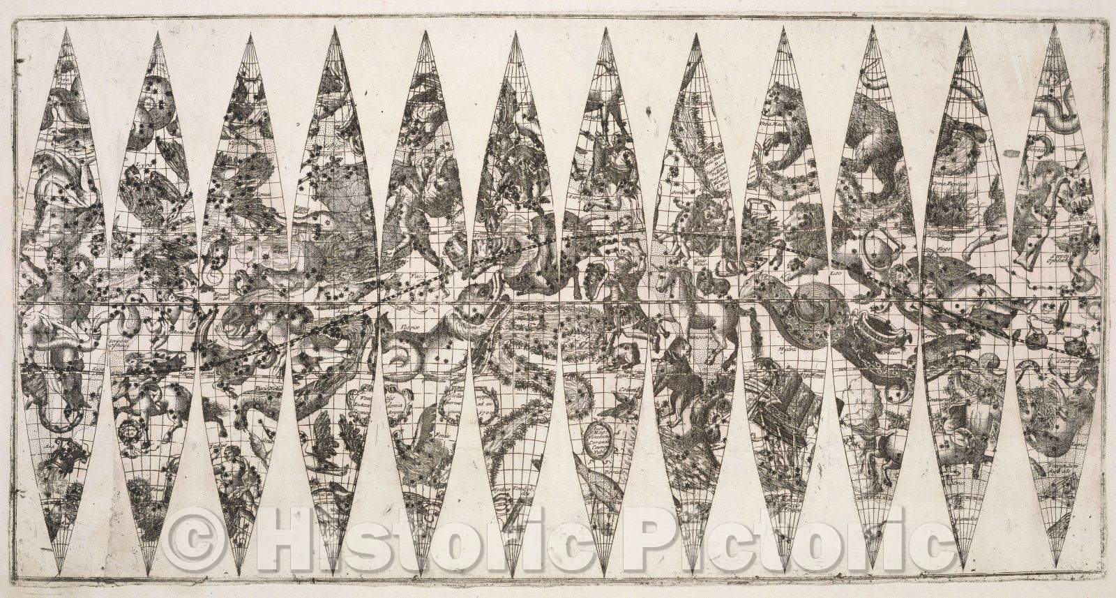 Historic Map : Untitled (Terrestrial and Celestial Globe Gores), 1693 , Vintage Wall Art