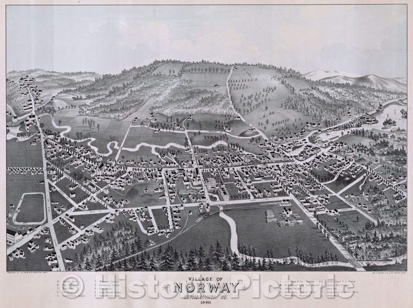 Historic Map : Village of Norway Oxford County, Maine 1886, 1886 , Vintage Wall Art