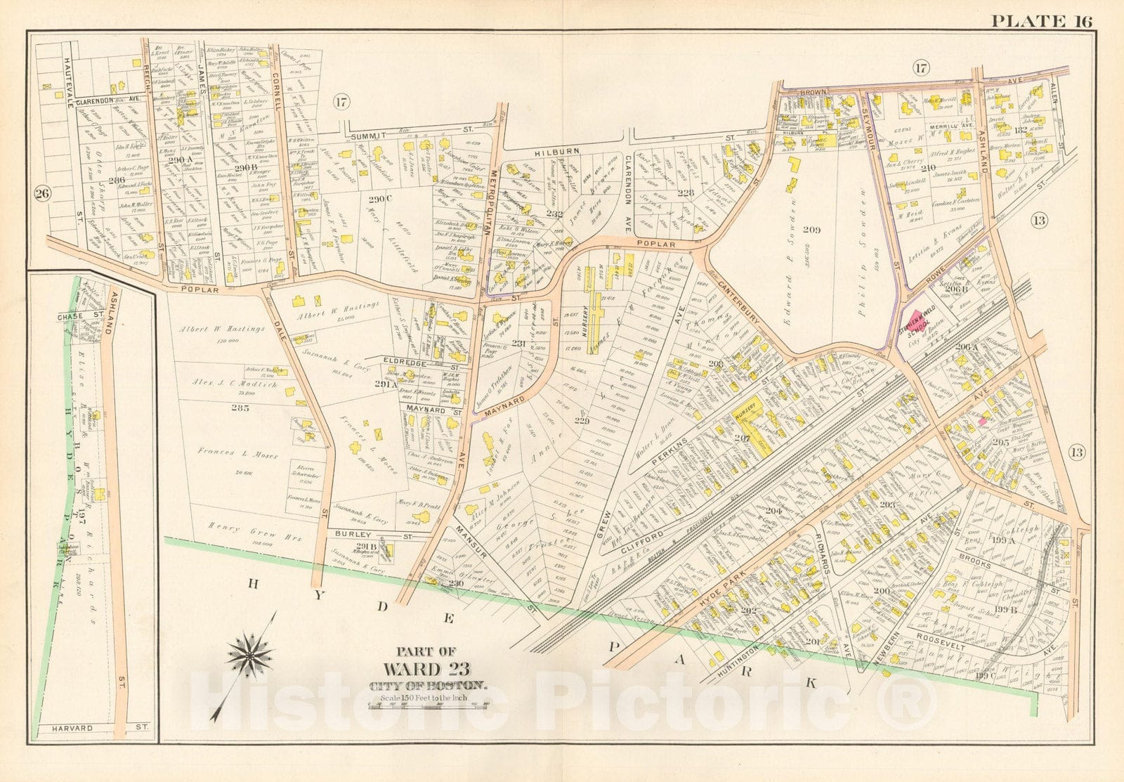 Historic Map : West Roxbury, Jamaica Plain & Roslindale, Roslindale 1905 Plate 016 , Vintage Wall Art