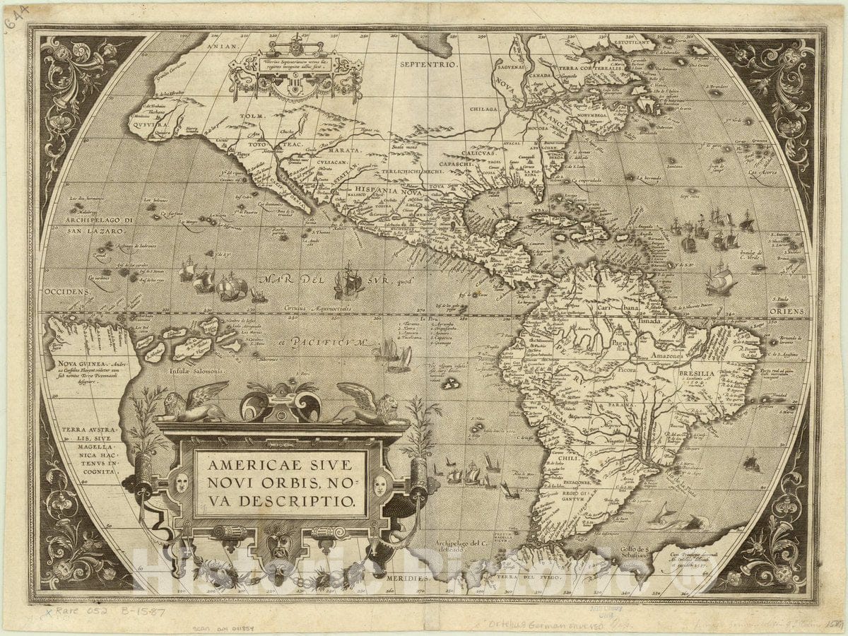 Map : Western Hemisphere 1587 1, Americae sive novi orbis nova descriptio , Antique Vintage Reproduction