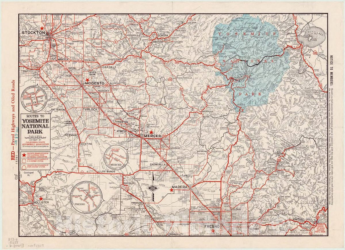 Routes to Yosemite National Park / copyright by California State Automobile Association