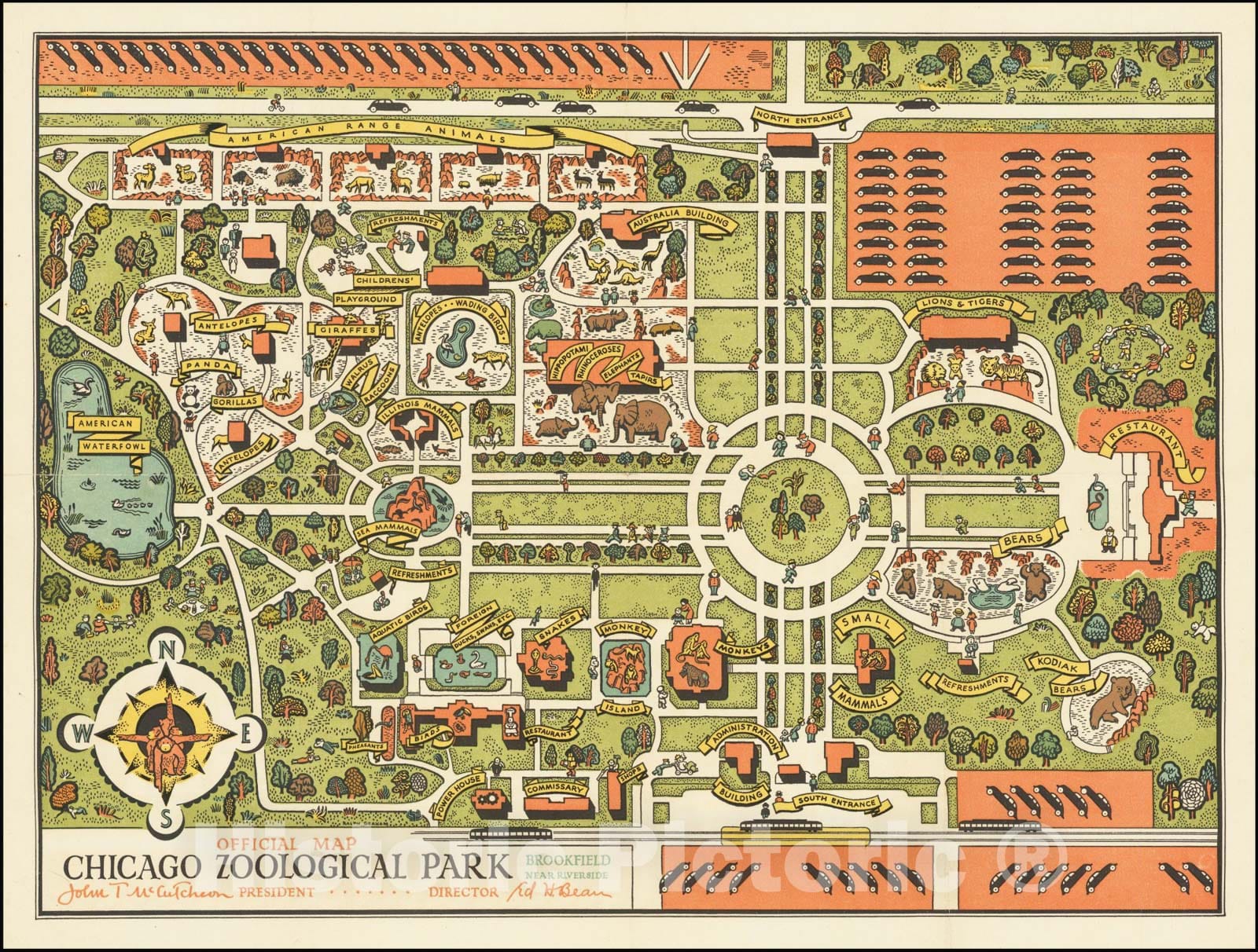 • .Historic Map : Official Map Chicago Zoological Park, 1935, Vintage Wall Art
