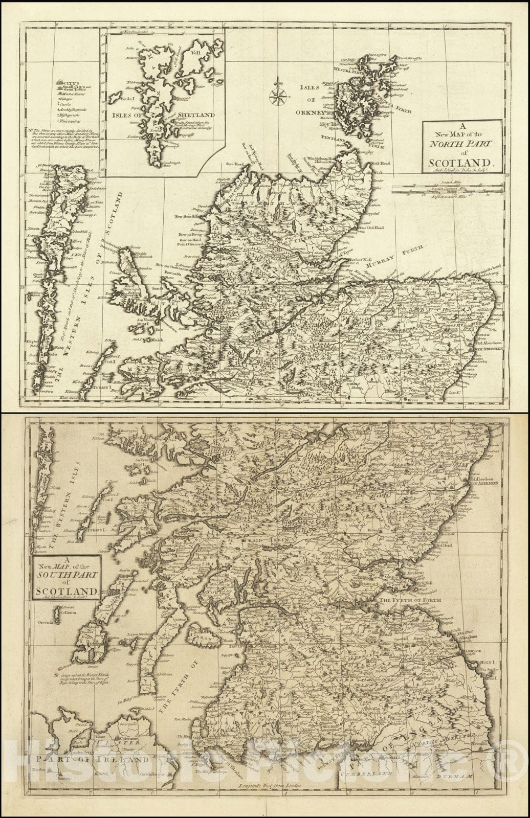 Historic Map : South and North Part of Scotland, 1753, Vintage Wall Art