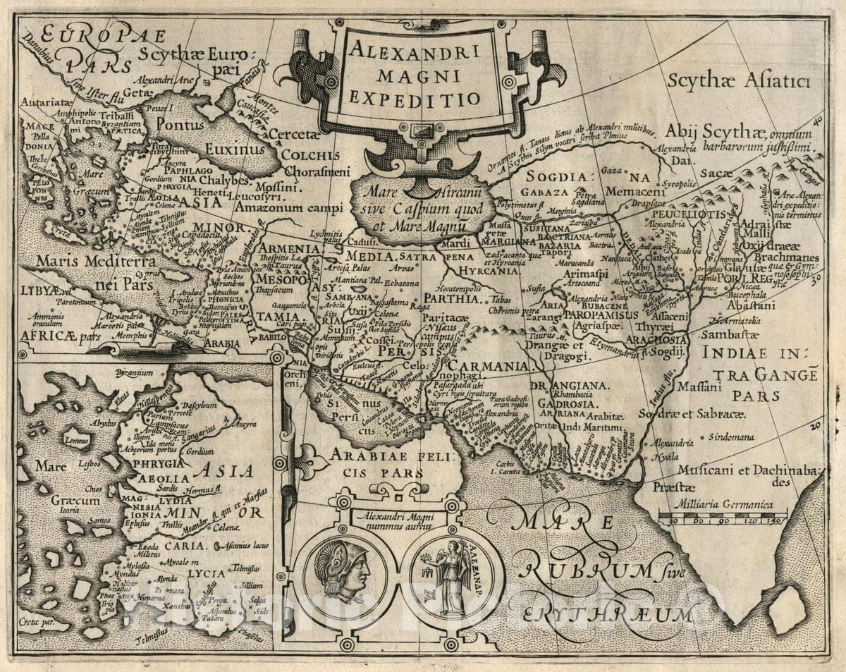 • .Historic Map : Asia Minor Alexandri Magni Expeditio. (Inset) Asia Minor. (to accompany) Atlas Minor Gerardi Mercatoris, 1607 Atlas , Vintage Wall Art