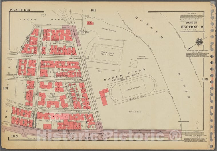 Historic 1955 Map - Plate 186, Part Of Section 8: [Bounded By Indian Road, (Harlem R - Vintage Wall Art