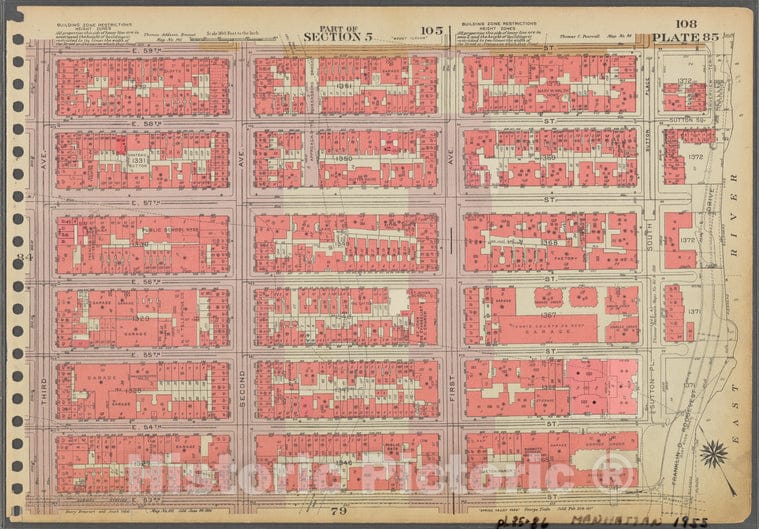 Historic 1955 Map - Plate 85, Part Of Section 5: [Bounded By E. 59Th Street, (East R - Vintage Wall Art