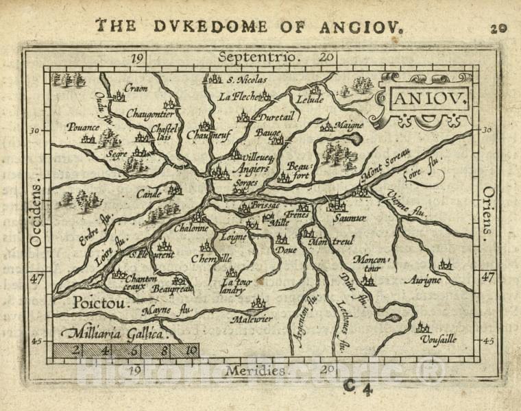 Historic Map - 1603 Anjou, Maine-Et-Loire (France), Aniov, Abraham Ortelius - Vintage Wall Art