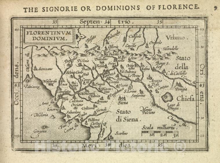 • .Historic Map - 1603 Florence, Arno River (Italy), Florentinum Dominium, Abraham Ortelius - Vintage Wall Art
