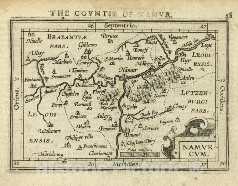 • .Historic Map - 1603 Namur (Belgium : Province), Namurcum, Abraham Ortelius - Vintage Wall Art