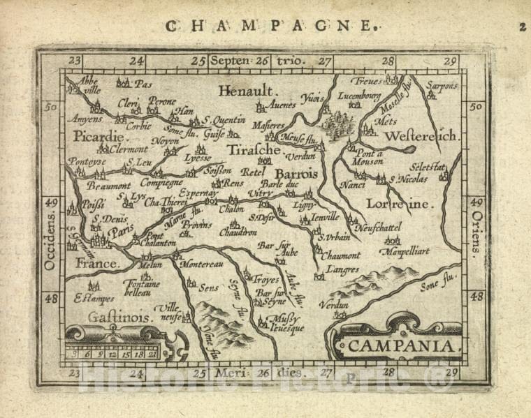 Historic Map - 1603 Paris, Seine River (France), Campania, Abraham Ortelius - Vintage Wall Art