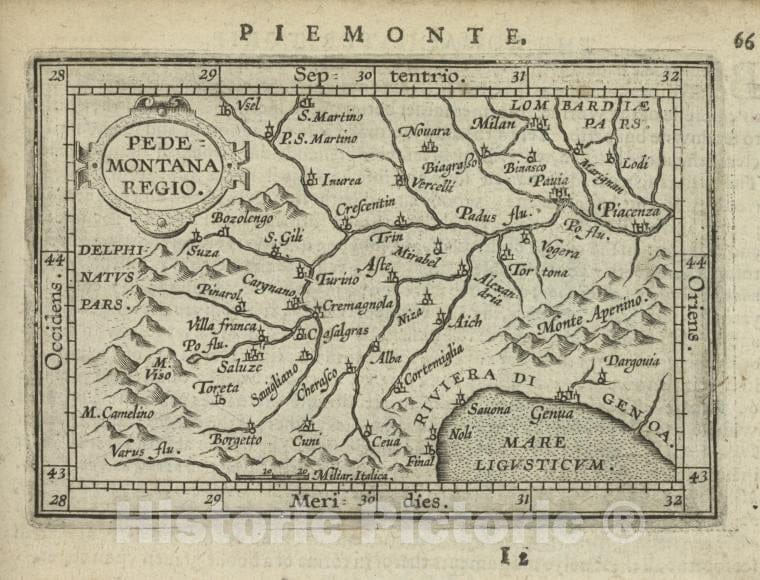Historic Map - 1603 Piedmont, Genoa (Italy), Pedemontana Regio, Abraham Ortelius - Vintage Wall Art
