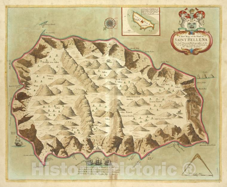 • .Historic Map - 1702 A New Mapp Of The Island Of Saint Helena, Thornton, Samuel, Nautical Chart Of South Atlantic Ocean - Vintage Wall Art