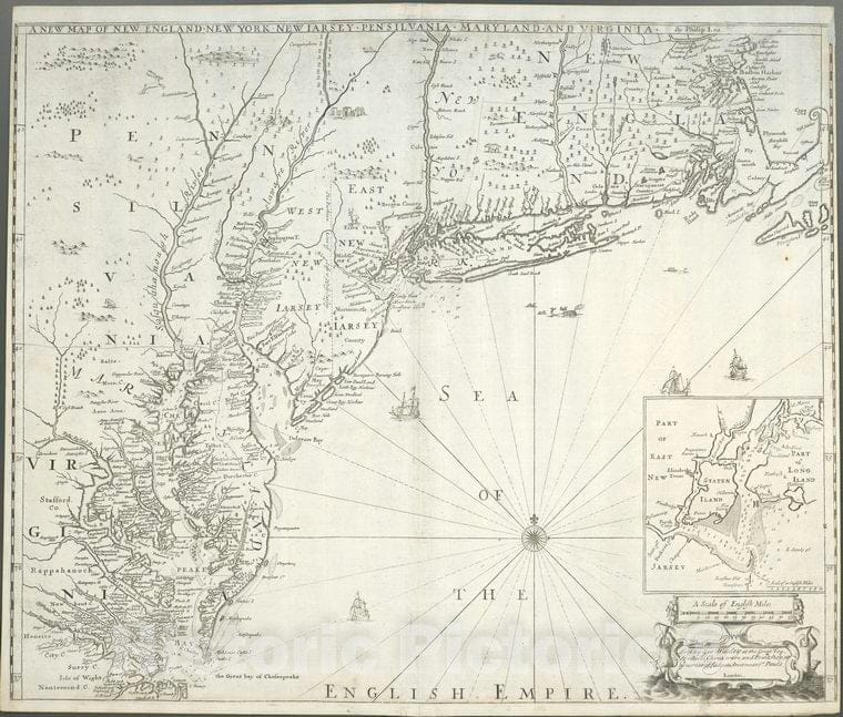 Historic Map - 1715 New England, New York, New Iarsey, Pensilvania, Maryland, And Virginia. - Vintage Wall Art