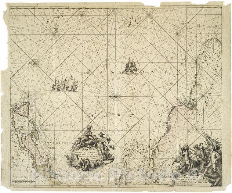 • Historic Map - 1715 North Atlantic Ocean, Terra Nova, Ac Maris Tractus Circa Novam Franciam, Regions Around New France, England, Belgium - Vintage Wall Art