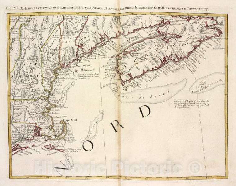 Historic Map - 1778 North America, L'Acadia, Le Provincie Di Sagadahook E Main, La Nuova Hampshire, La Rhode Island, E Parte Di Massachusset E Connceticut. - Vintage Wall Art