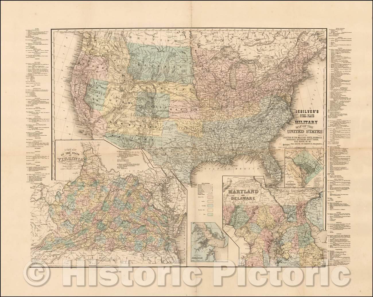 Desilver's Steel Plate Military of the United States Showing The Location of the Military Posts, Arsenals, Barracks, Batteries, Navy Yards, 1861