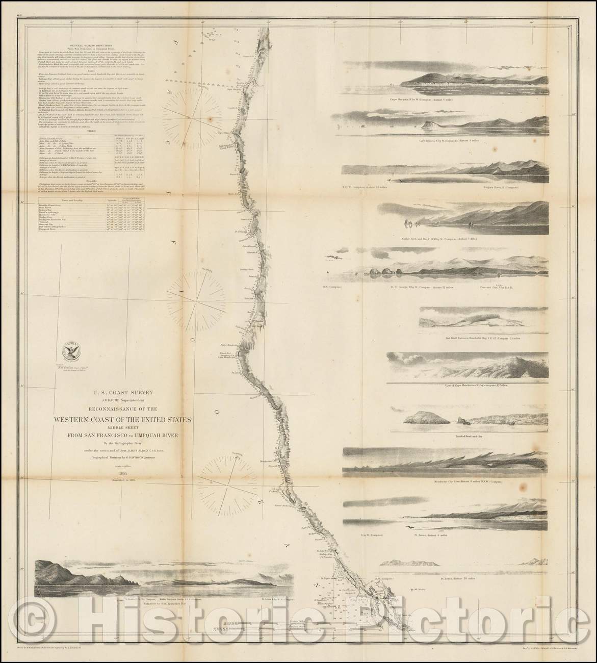 Historic Map - Reconnaissance of the Western Coast of the United States Middle Sheet From San Francisco To Umpquah River, 1854, United States Coast Survey v2