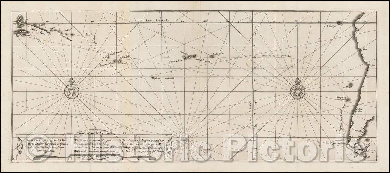 • .Historic Map - Tabula, ductum navigationis, quem in Mari Australi tenuit Iacobus Le Maire, 1622 - Vintage Wall Art