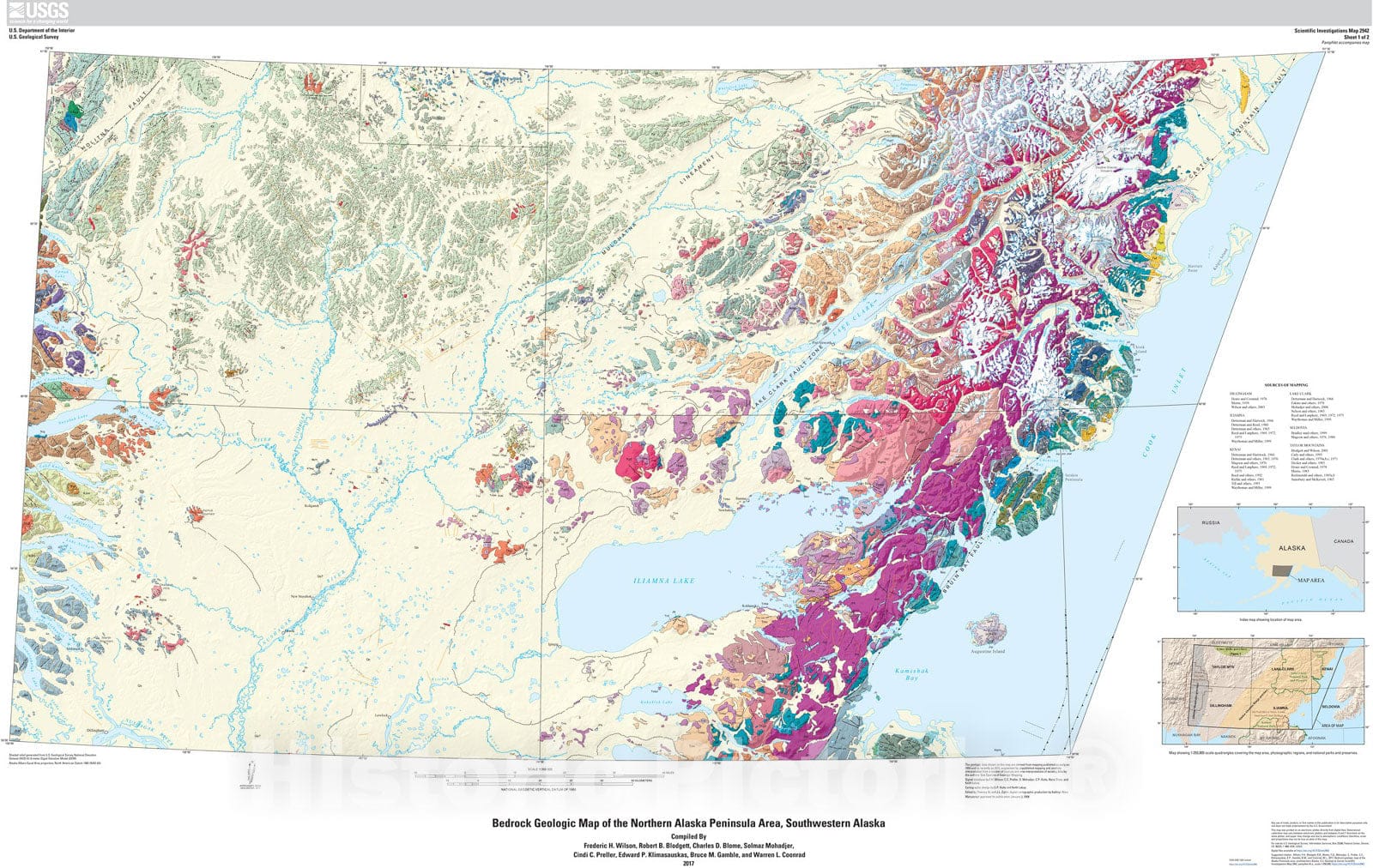 Map : Bedrock geologic map of the northern Alaska Peninsula area, southwestern Alaska, 2017 Cartography Wall Art :