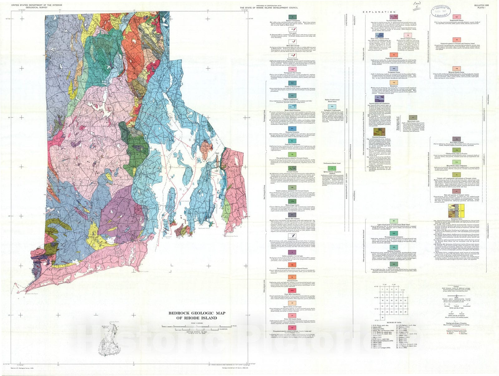 Map : Bedrock geology of Rhode Island, 1971 Cartography Wall Art :
