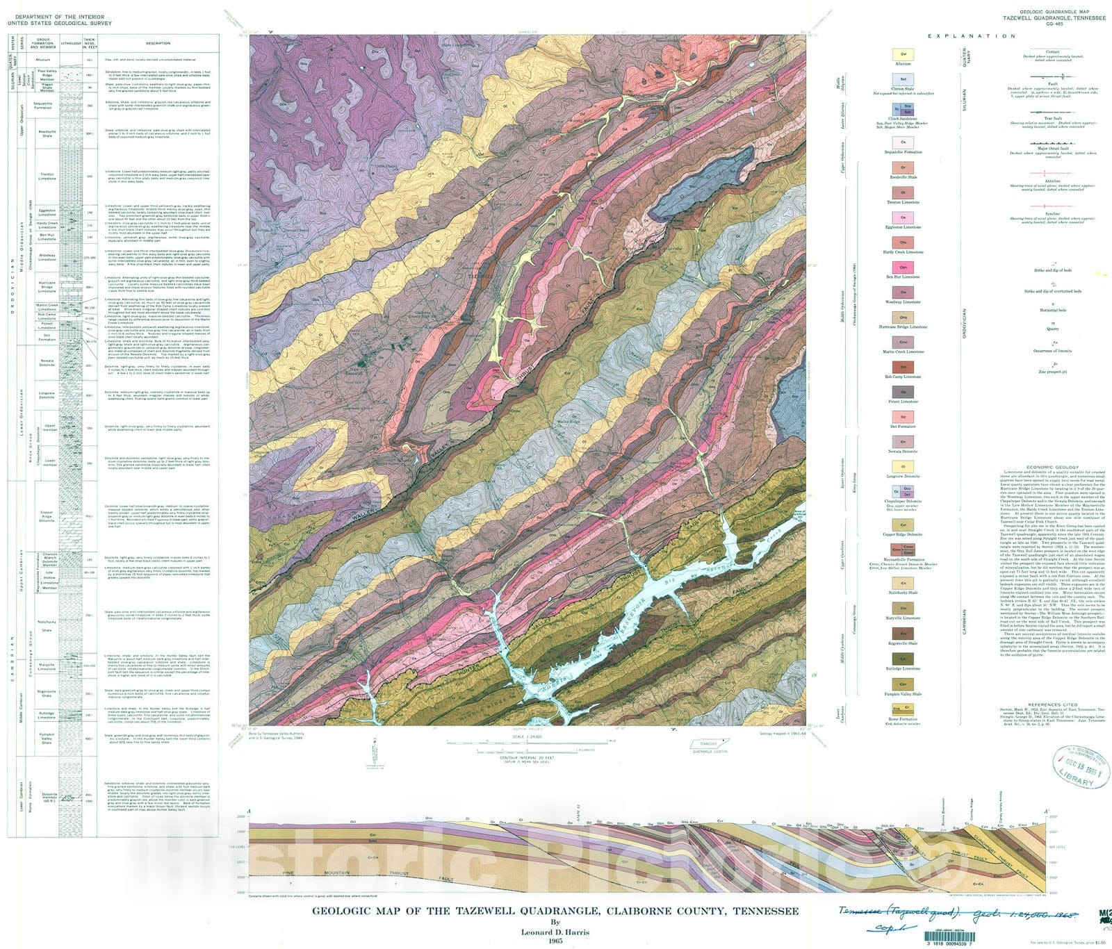 Map : Geologic map of the Tazewell quadrangle, Claiborne County, Tennessee, 1965 Cartography Wall Art :