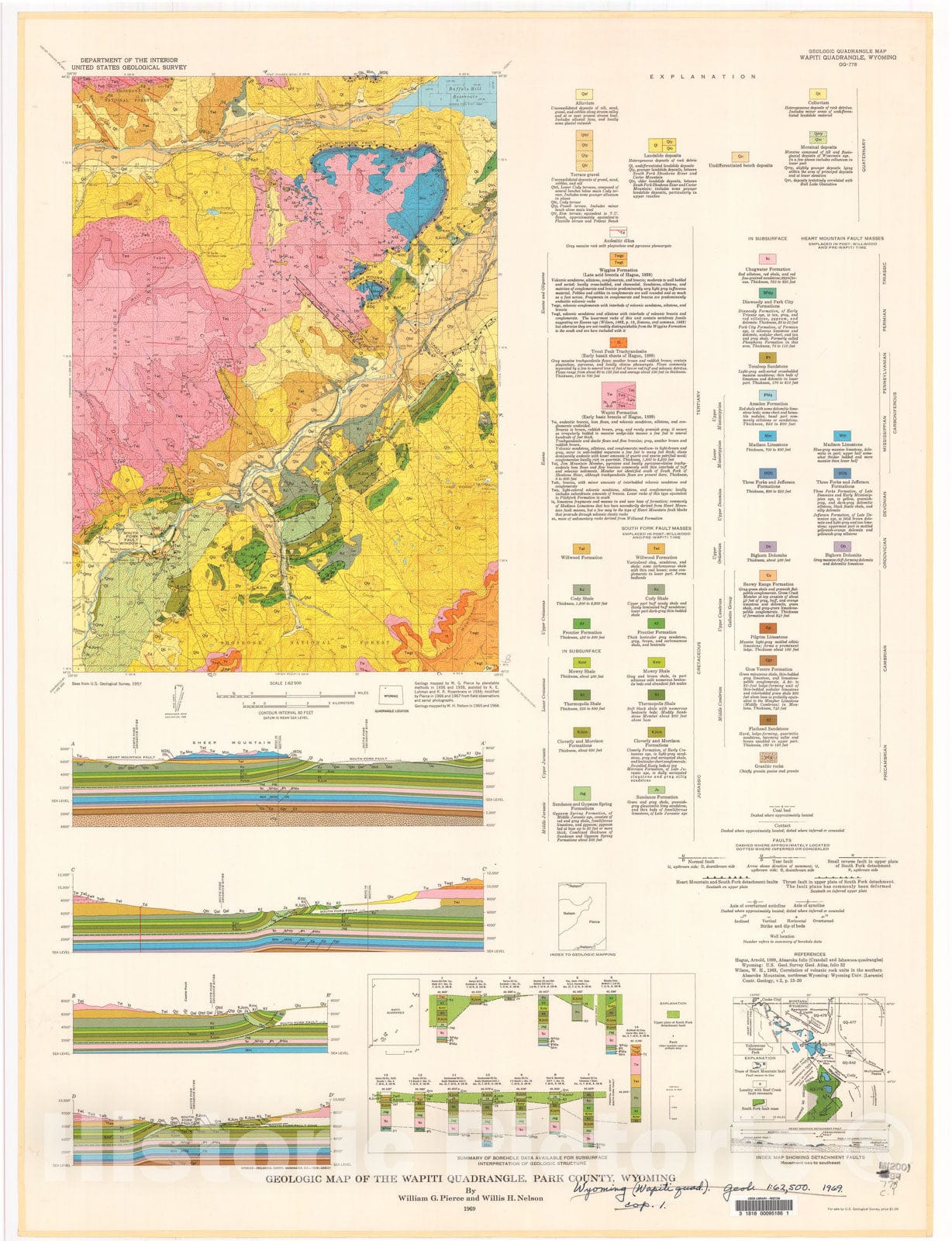 Map : Geologic map of the Wapiti quadrangle, Park County, Wyoming, 1969 Cartography Wall Art :