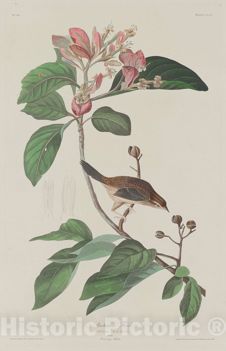 • .Art Print : Havell After Audubon, Bachmans Finch, 1833 - Vintage Wall Art
