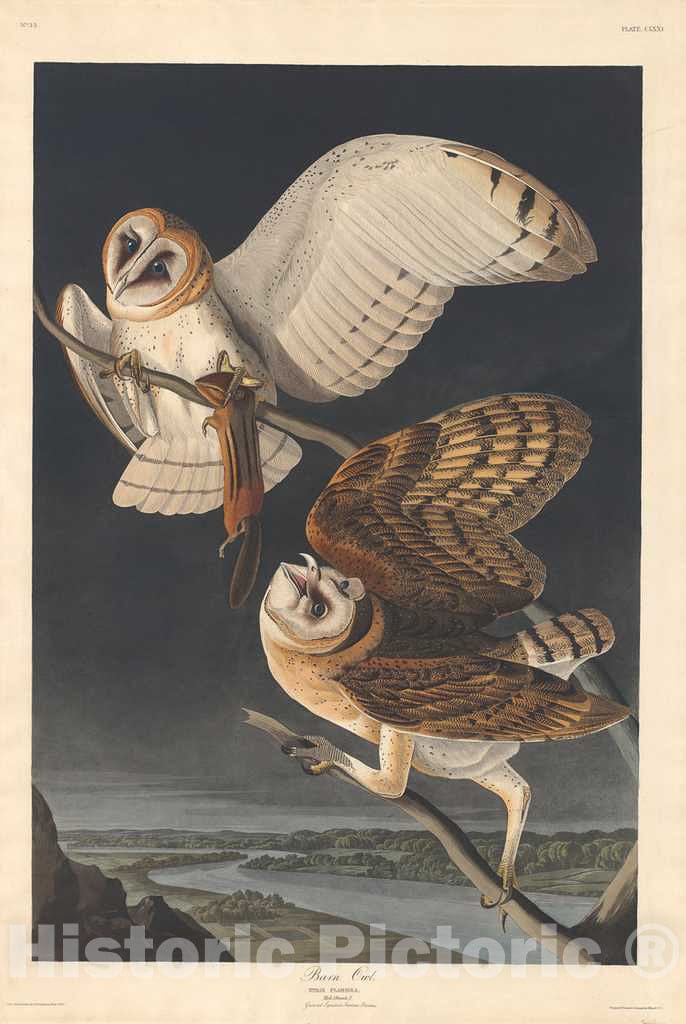 Audubon, Birds of America, Barn Owl, 1848 : Art Print